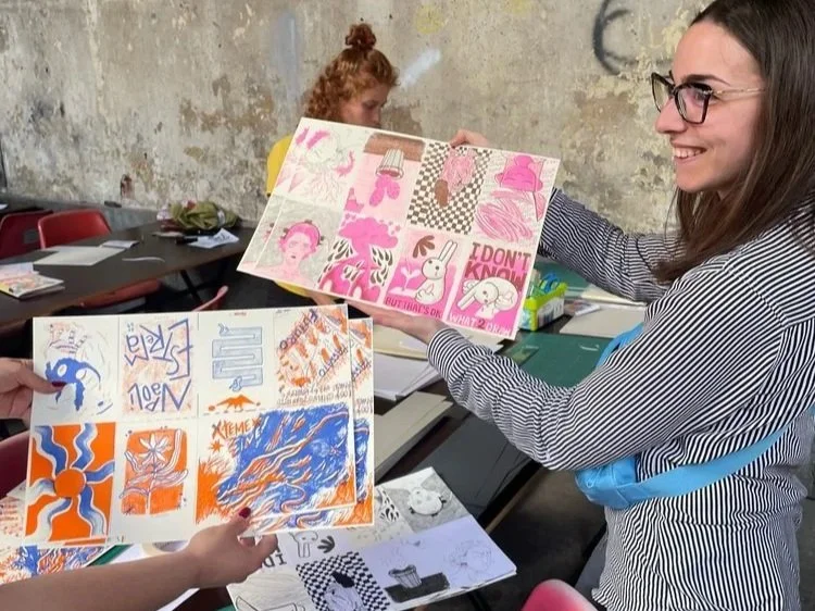 Wobby is also available for workshops, either on location or at our studio in Tilburg. While we are specialised in Risograph printing, we also offer workshops in drawing, zine-making, and other hands-on, print-related practices. These workshops are tailored to different audiences and skill levels and can be adapted for a variety of contexts, such as school programmes, team-building activities, or simply a creative experience to enjoy with friends.