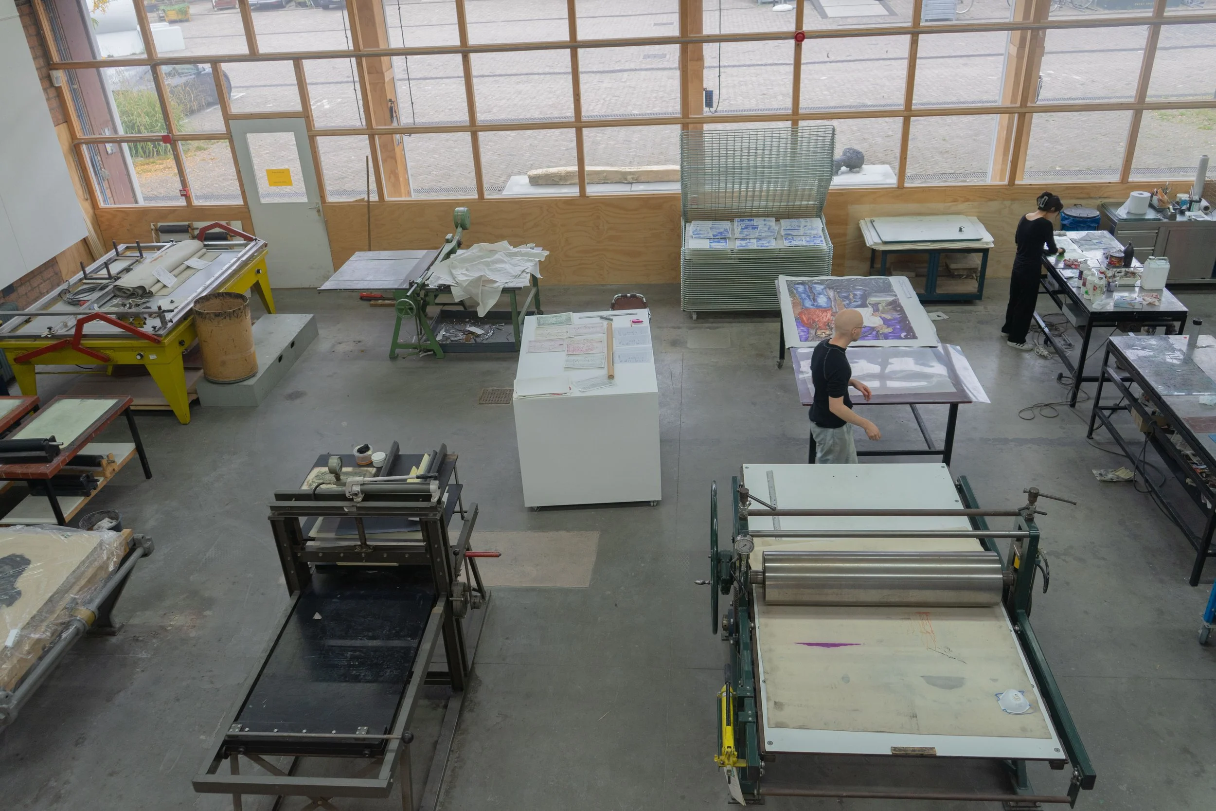 The sixth edition of the residency ‘To Riso or Not’ at Make Eindhoven, in the lead-up to Dutch Design Week, has finished a while back. Six young illustrators and artists spent two weeks working in the graphic workshop of Make, exploring techniques such as dry needle, silkscreen, and risoprint. To gain insights into the artists’ experiences, Wobby spoke with some of them a few weeks after the residency.