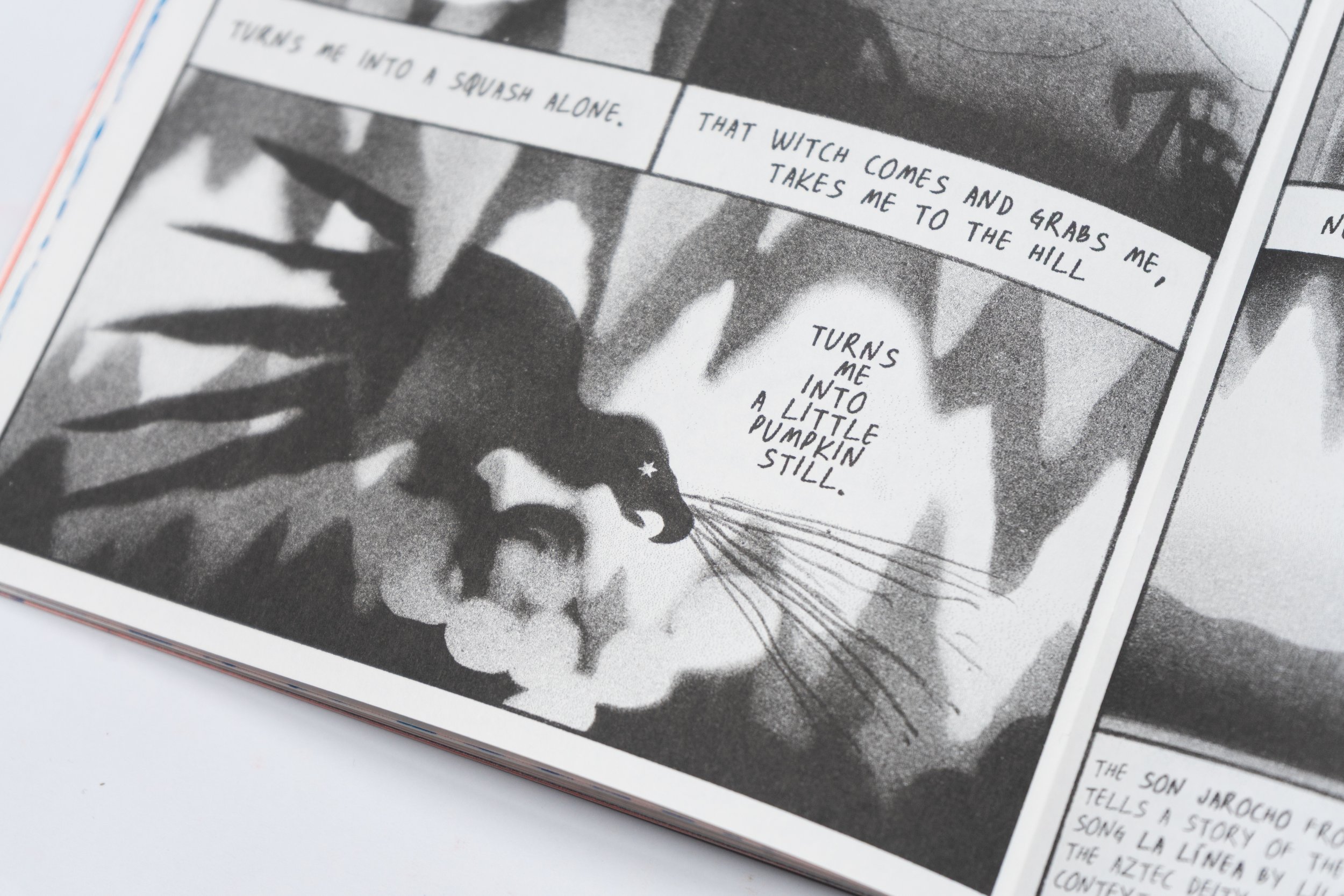 “In a lot of stories in Mexico, people sing. That clicked in my head: I wanted to translate two songs that are really about Mexico into my comic for Wobby. La Bruja is a weird story about a guy who talks with a witch and gets seduced by her. At some point, it is like an erotic game between him and the witch”, Luis tells.