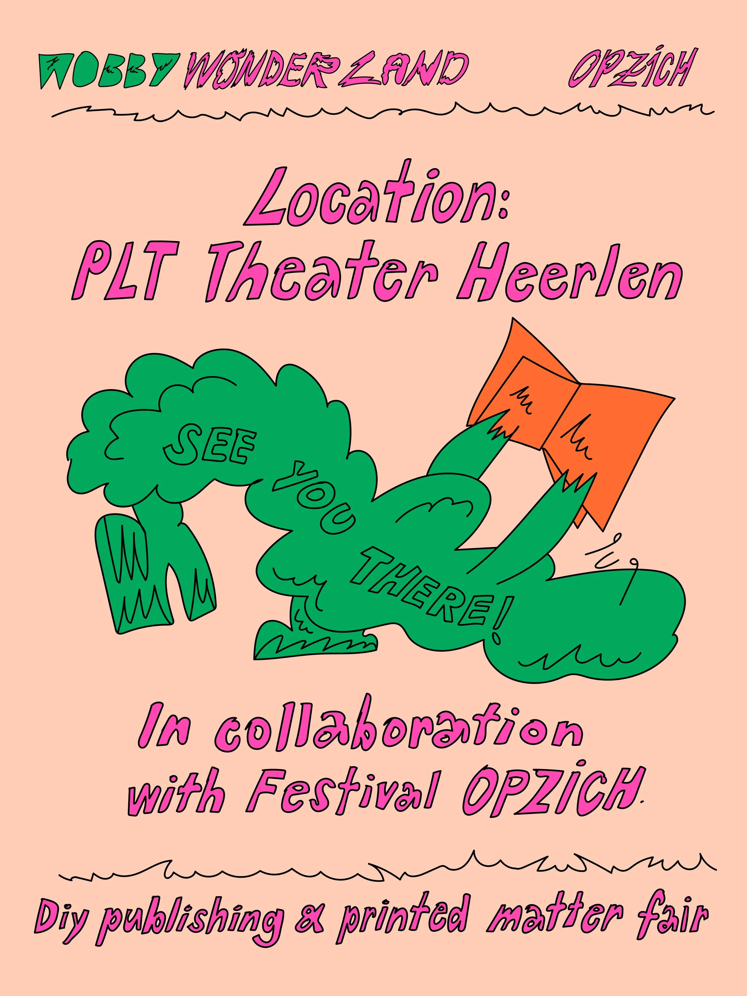 Save the date! We are happy to announce the 6th edition of Wobby Wonderland on Saturday, March 21. For the first time, our cosy fair is leaving Tilburg, as part of OPZICH at PLT Theater in Heerlen. OPZICH is a literary festival which offers a program including Ester Naomi Perquin, Petra de Koning, Lamyae Aharouay, and Spinvis.