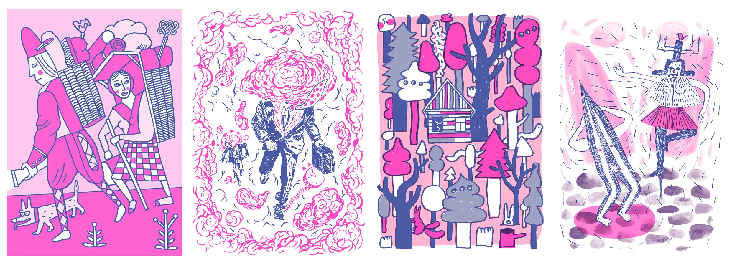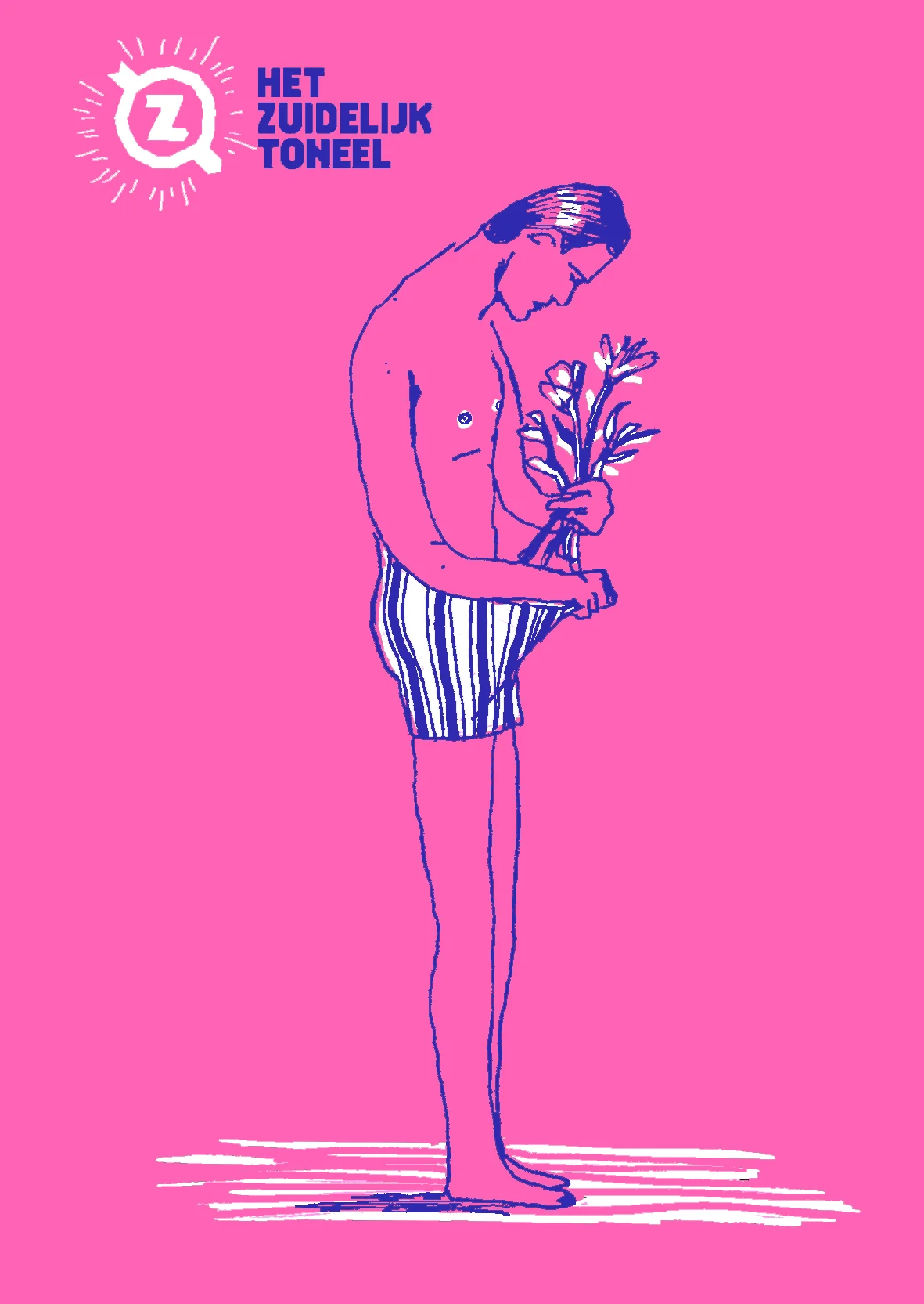 Our first Wobby.club commission: a fluo pink leporello summer postcard set printed for Dutch national theatre company HZT / Het Zuidelijk Toneel.