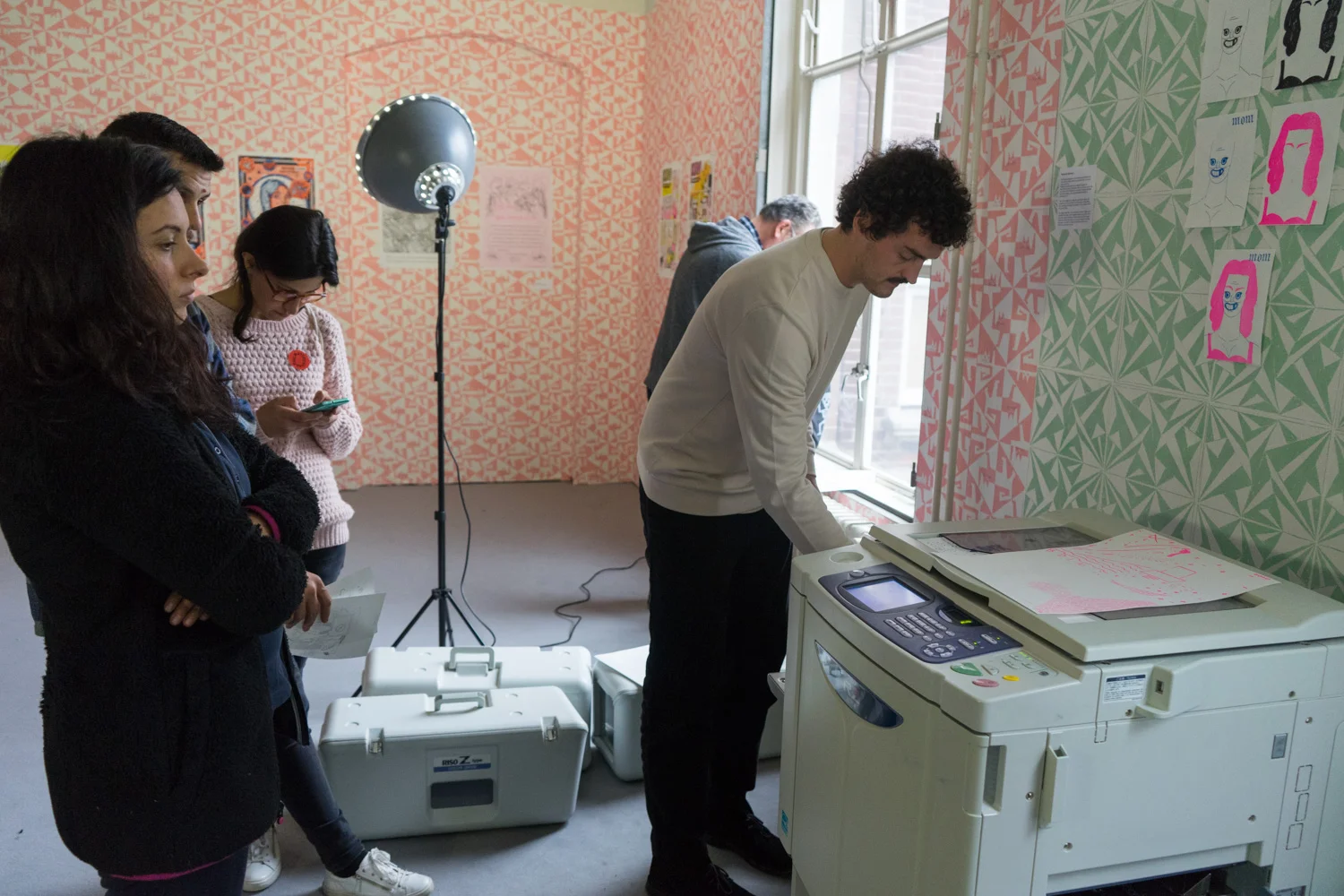 Every weekend Wobby.club was present at Graphic Matters and pamphlets were printed on-site. Under the expert guidance of Wobby.club you could print pamphlets yourself with a Risograph (stencil) printer. A pamphlet is always printed on both sides, a pro on one side and a con on the other side. The public was responsible for the distribution of the pamphlet. The opposite messages spread confusion and instigate debate outside of your trusted social media bubble.