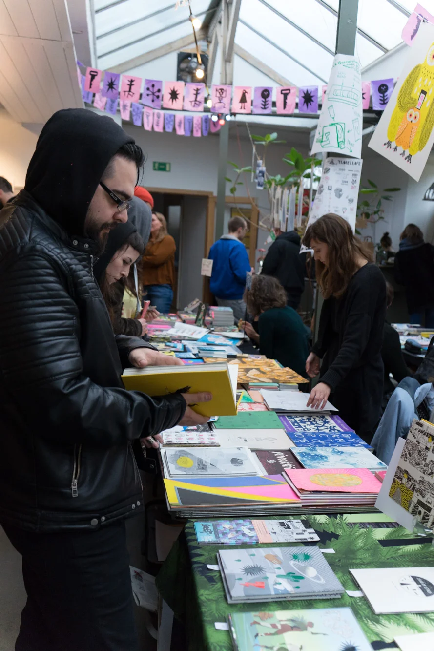 Public could meet the makers and discover insipiring artists, publishers and collectives. Drinks and vegetarian / vegan food were catered by Bas and Joanne. In the evening there were talks by the Belgian collective Tieten met Haar, the Belgian comic artist Ward Zwart and the Godfathers of Dutch Risoprint Knust Press.